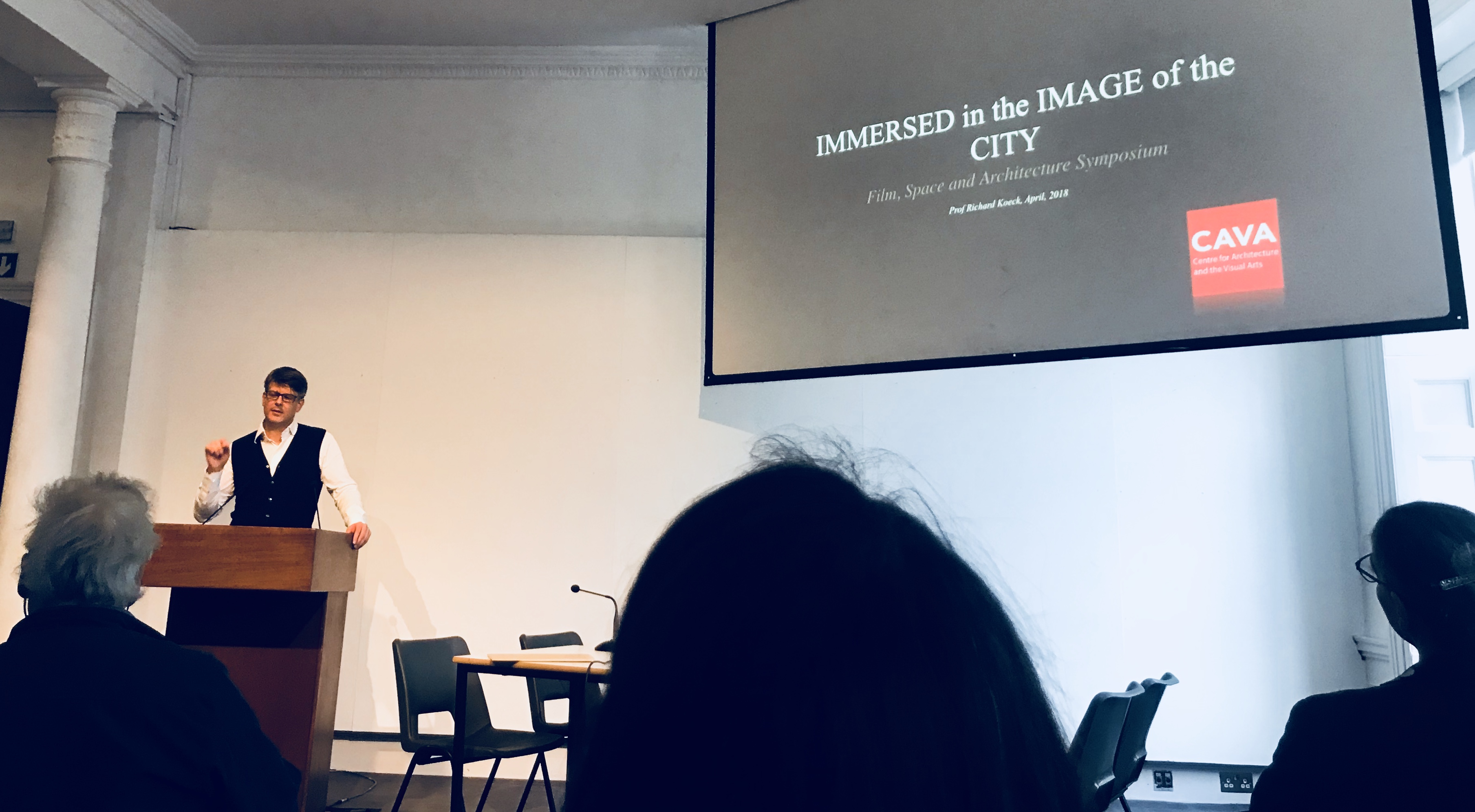 Prof Richard Koeck talk on "Immersed in the Image of the City" opens the Film, Space and Architecture Symposium 2018 at the Architectural Association in London. Brian Hatton, organiser of the symposium, invited leading film as well architectural scholars, such as Ian Christie, Penelope Haralambidou, François Penz, Renee Tobe, Nigel Coates, Mark Cousins and Robert Maxwell, to discuss the intersection of these knowledge domains.